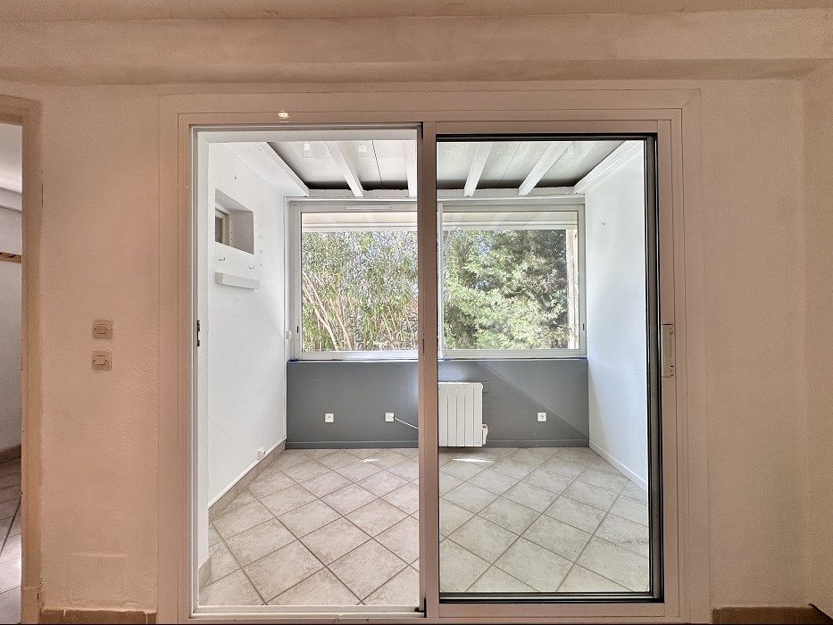 Le salon offre un accès direct à une terrasse intimiste qui vous permettra de profiter pleinement de l’extérieur en toute tranquillité.